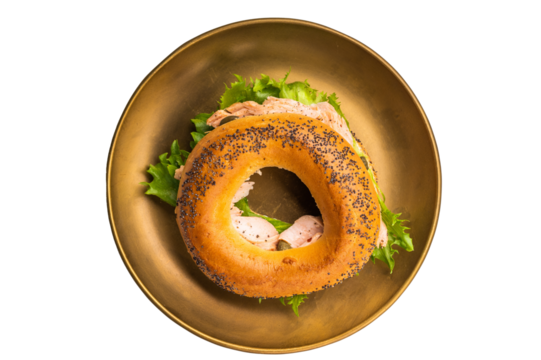 Bagel with salmon and cream cheese , isolated on transparent background, png