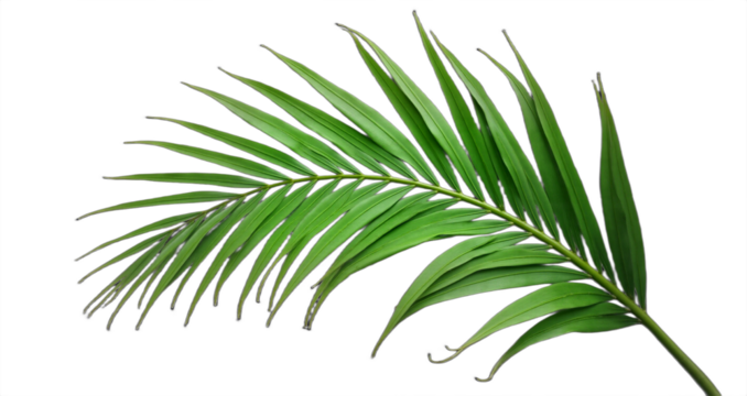 Tropical green palm leaf cut out. Botanical illustration for summer designs, luau party invitations, and tropical-themed backgrounds. Isolated on transparent background.