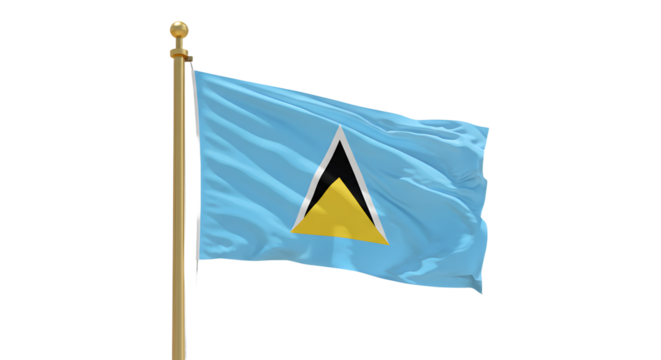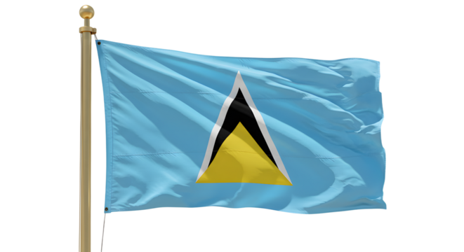 Flag of Saint Lucia waving on pole against white background, symbol of Caribbean island nation, perfect for travel and cultural projects