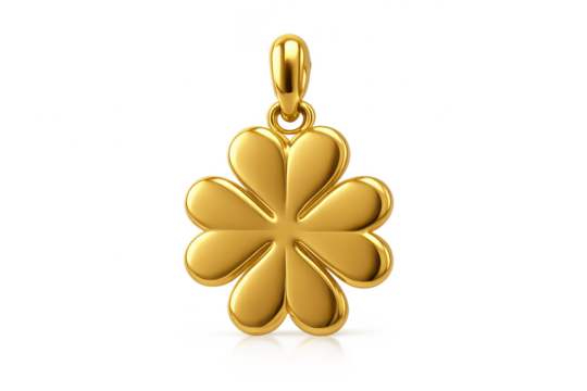 Golden clover pendant isolated on transparent background, jewelry luck charm