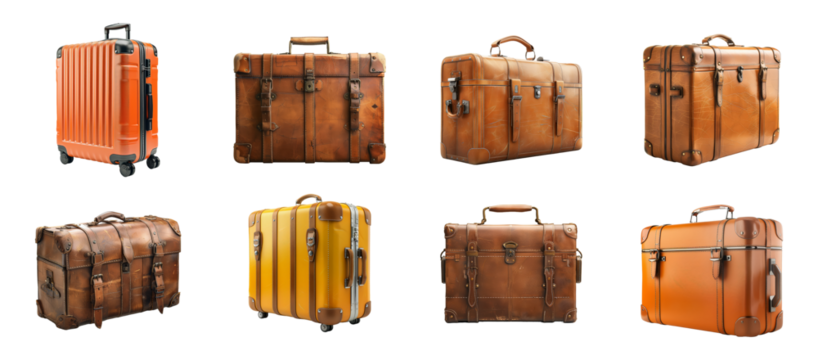 Designer Luggage Sets: A flat lay of designer luggage sets with sleek and modern designs, isolated on a Transparent background, PNG file.