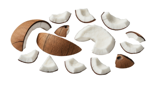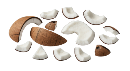 Multiple chunks of Swiss cheese floating food isolated on a transparent background