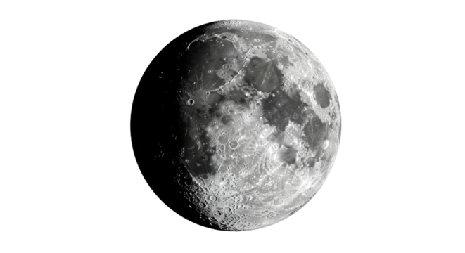 Detailed half moon phase on transparent background