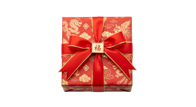 Elegant red and gold gift box with Chinese design, a touch of luxury for Lunar New Year celebrations, perfect for festive marketing campaigns