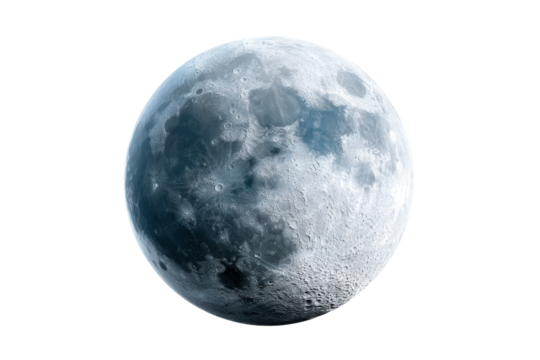 Highly detailed full moon isolated on transparent background, perfect for space projects, scientific visualizations, or any design needing a realistic lunar element