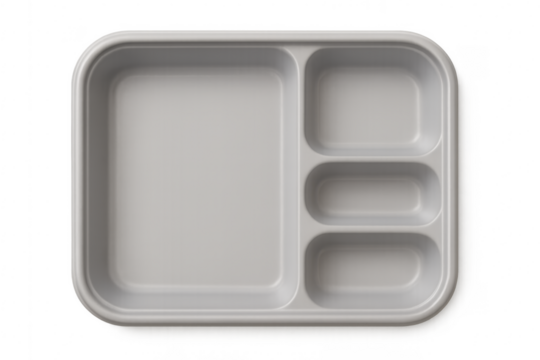 Empty beige food tray with multiple compartments, ready for serving or packing meals, transparent background