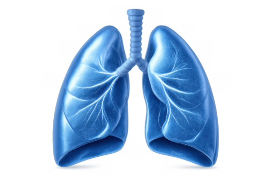 Human lungs anatomy isolated PNG on transparent background, respiratory system with trachea and bronchi for medical and educational use