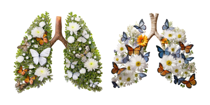 Lungs Surrounded by Nature with Butterflies and Floral Elements