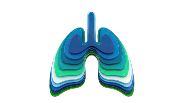 Colorful medical illustrations of human lungs in various styles, isolated on transparent background