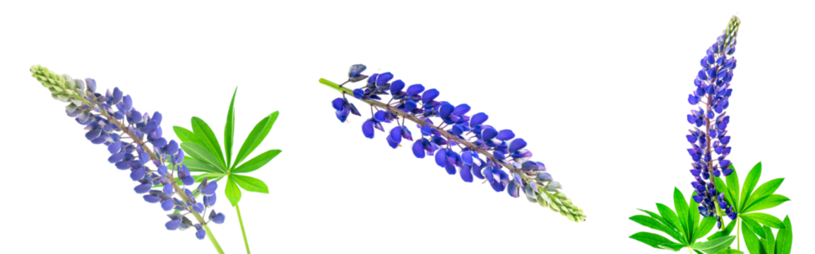 Two vibrant purple lupine flowers isolated transparent background botanical
