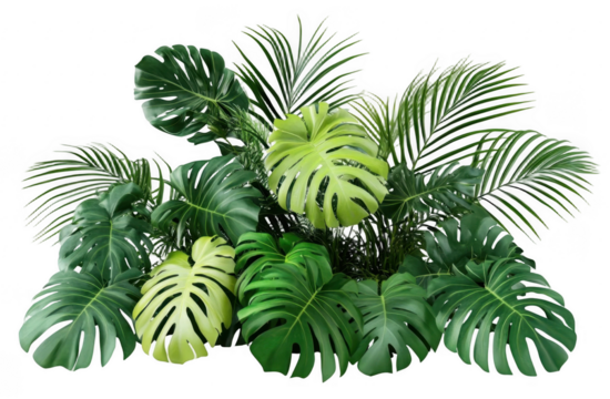 Lush green tropical plants bush, cut out