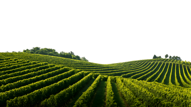 rolling vineyard, lush and vibrant, stretches across a landscape isolated on white background