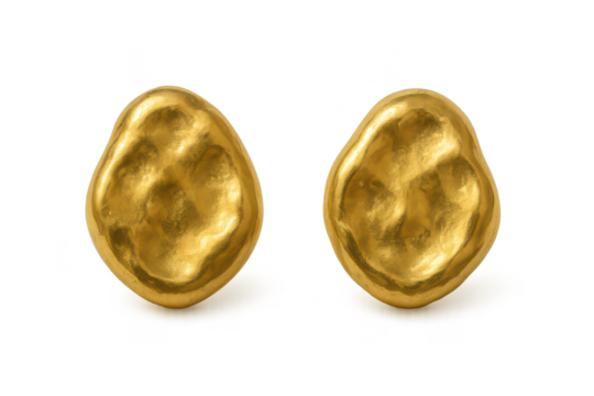 Two shiny golden abstract forms isolated on transparent background, metallic glow