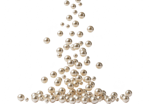 A cascade of lustrous pearls falling and scattering, isolated on a transparent background, symbolizing luxury and elegance