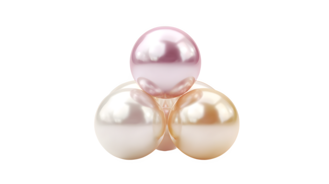 Four lustrous iridescent pearls arranged in a small pyramid structure against a