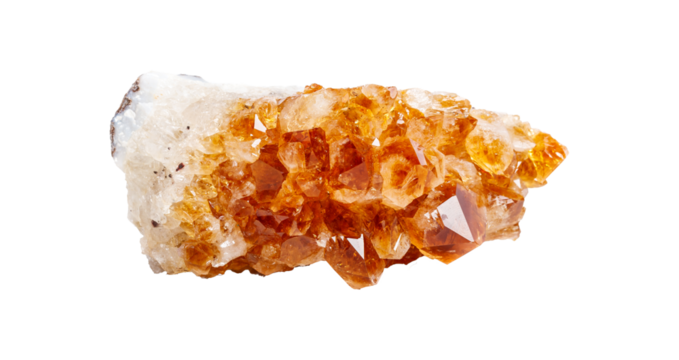 A vibrant citrine gemstone on a white isolated background, displaying rich yellow tones with a lustrous surface. Perfect for spiritual decor or high-end jewelry design.