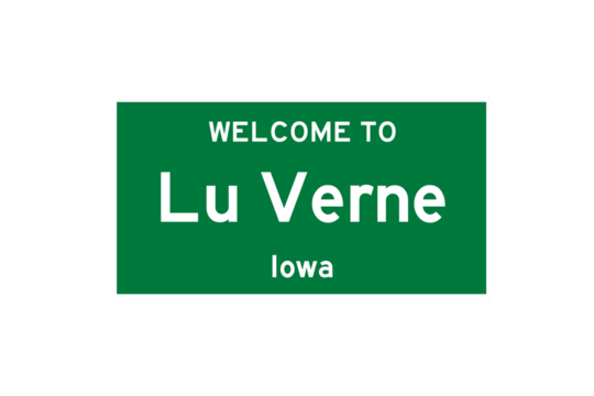 Lu Verne, Iowa, USA. City limit sign on transparent background.