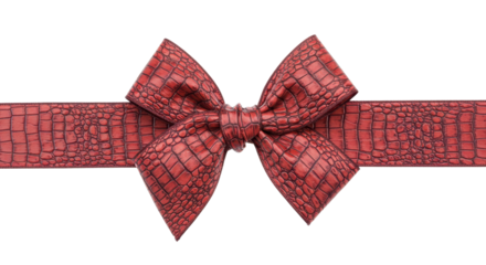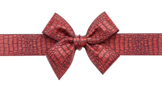 Red crocodile-embossed ribbon bow with a horizontal stripe.