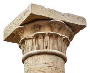 Luxor's carved ancient Egyptian column isolated on transparent background