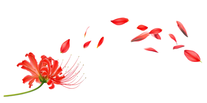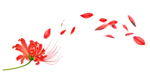 Red Lycoris Flower with Scattering Petals on White, cut out transparent