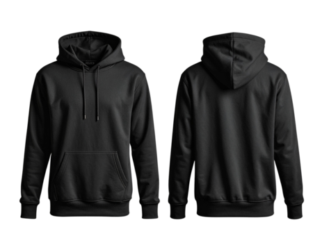 Black Men’s T-Shirt Mockup  Front and Back Flat Lay on Transparent Background PNG