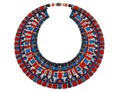 Vibrant maasai beaded necklace display cultural showcase jewelry studio environment, isolated on white or transparent background