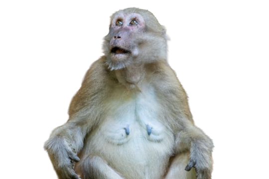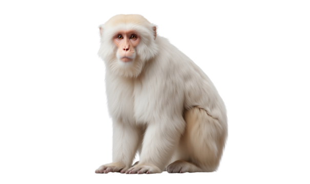 Young macaque monkey with soft fur and expressive eyes isolated, transparent background