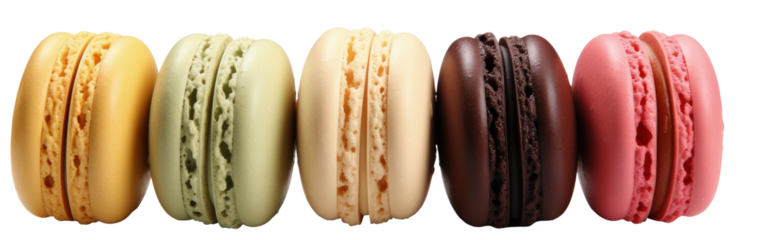 A row of French macaroons isolated on a transparent background