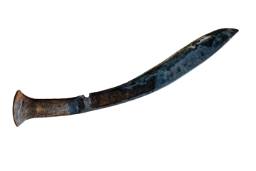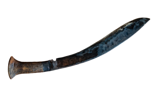 A machete with a long, curved blade, isolated on a empty plain background