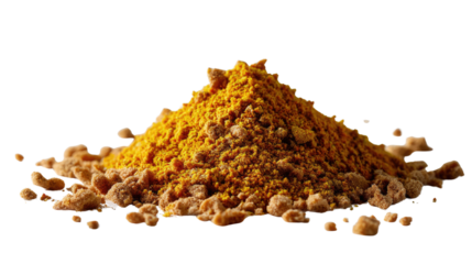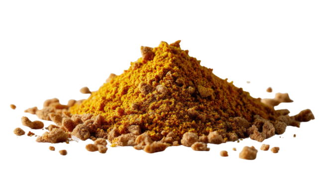 A Pile of Turmeric Spice: A vibrant, photorealistic image showcasing a heap of finely ground turmeric powder, with a slightly uneven and organic appearance.