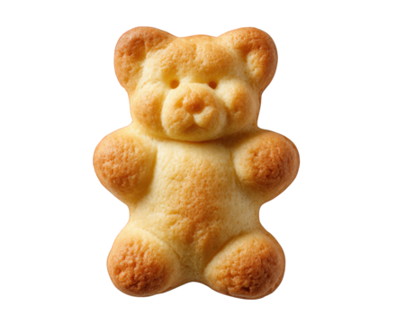 Cute teddy bear cookie snack from bakery. This sweet brown food dessert isolated on transparency background, charming and delicious single object for any design