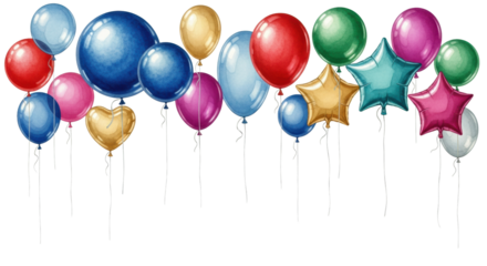ultra-detailed cgi render of dense, highly-reflective magenta latex helium balloons and cascading metallic ribbons across the top border, on a brilliant white background. concept for luxury