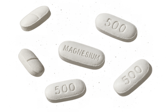 Magnesium supplement pills isolated on transparent background, healthcare concept