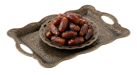 Sweet Dates Fruit on Ornate Metal Tray - Healthy Snack, Ramadan Food