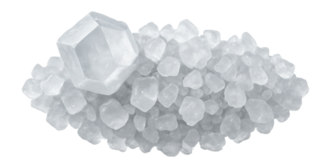 Magnesium chloride crystals to lower the freezing point in concrete mixes for road construction.