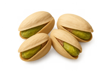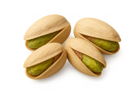 Pistachio nuts in shells. Healthy green snacks, natural food ingredient on transparent background