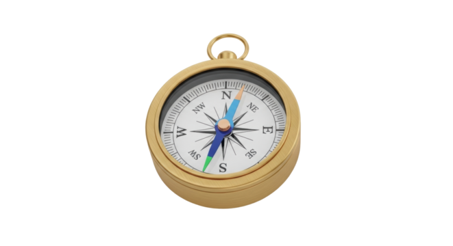 Isolated Compass with Green Markings for Directional Navigation and Wayfinding Utility