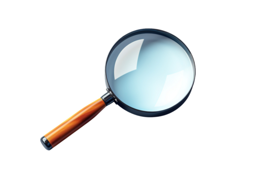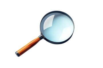 Enigmatic Exploration: A Magnifying Glass With a Wooden Handle on White or PNG Transparent Background.