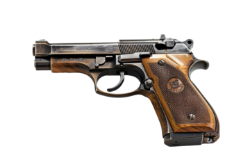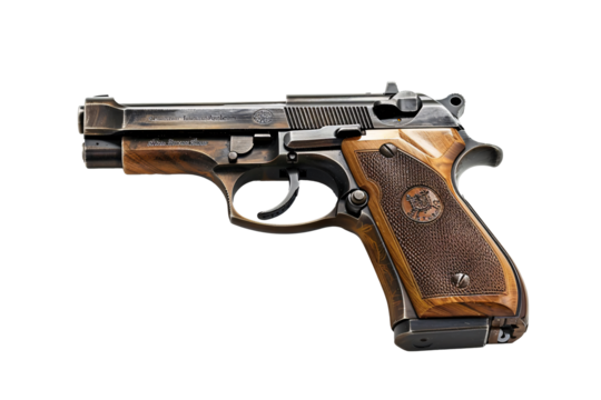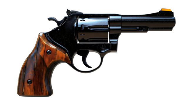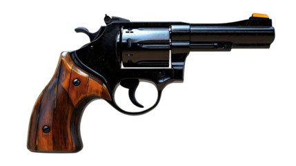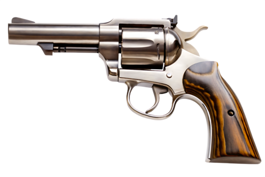 Silver Revolver with Striped Wooden Handle on Background handgun firearm isolated on a transparent background