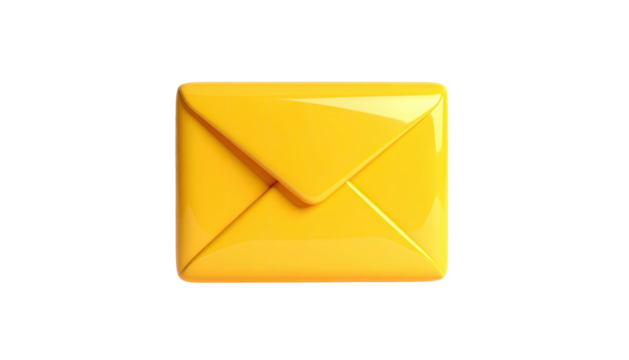 Shiny, yellow envelope icon with a realistic, glossy appearance, isolated on black