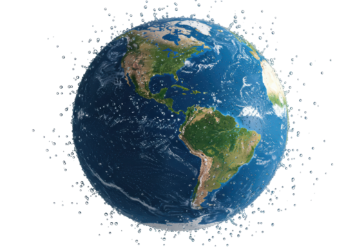 Isolated Planet Earth with Water Droplets Americas facing a wet world surface view