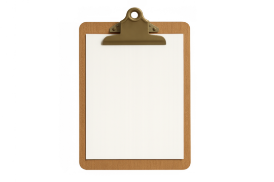 Clipboard holding blank paper, ready for notes, a document, or presenting information with a transparent background