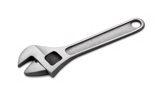 Adjustable wrench tool with chrome finish providing versatile repair and maintenance equipment on a transparent background