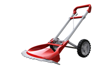 Crimson Vanguard: A Stunning Red and White Lawn Mower Ready for Action. On White or PNG Transparent Background.