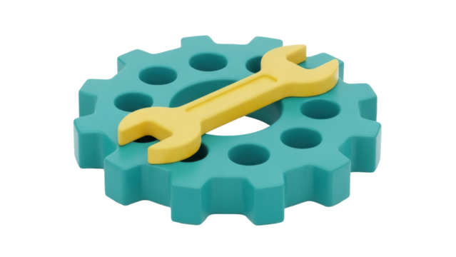 Orange cog and spanner transparent illustration for workflow concepts