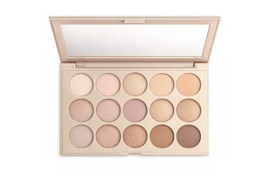 Eyeshadow palette displaying a variety of neutral colors, perfect for natural makeup looks. Essential beauty product