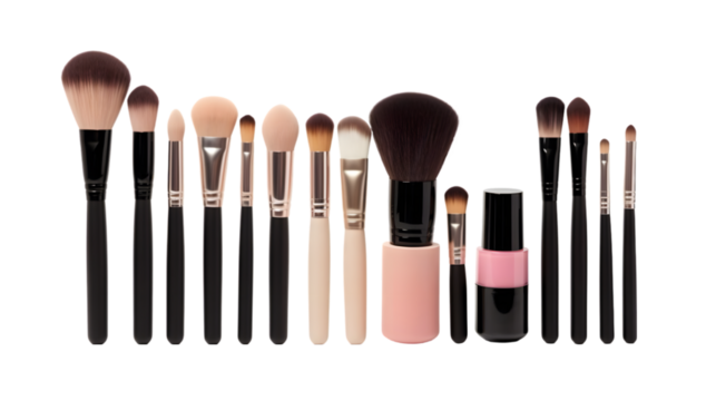 elegant collection of makeup and beauty essentials arranged on isolated transparent background