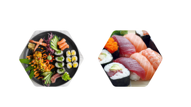 Fresh japanese sushi platter with variety of rolls on transparent background