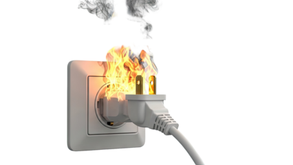 Electrical Outlet and Plug on Fire with Smoke