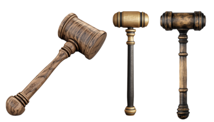 Vintage wooden mallets classic designs for authority on a  white background